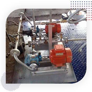 These days cylinders are filled more and more with the help of a special liquid pump which pumps the liquid from the liquid source to the cylinder filling system. The pumps is of special design to handle liquid CO2 at extremely low temperature at pressure (approx, 22kg/ cm2) and pumping the same to 80 kg/cm or more in cylinders. The entire piping circuit is made that the pumps run continuously and the excess liquid is returned back to the storage system.